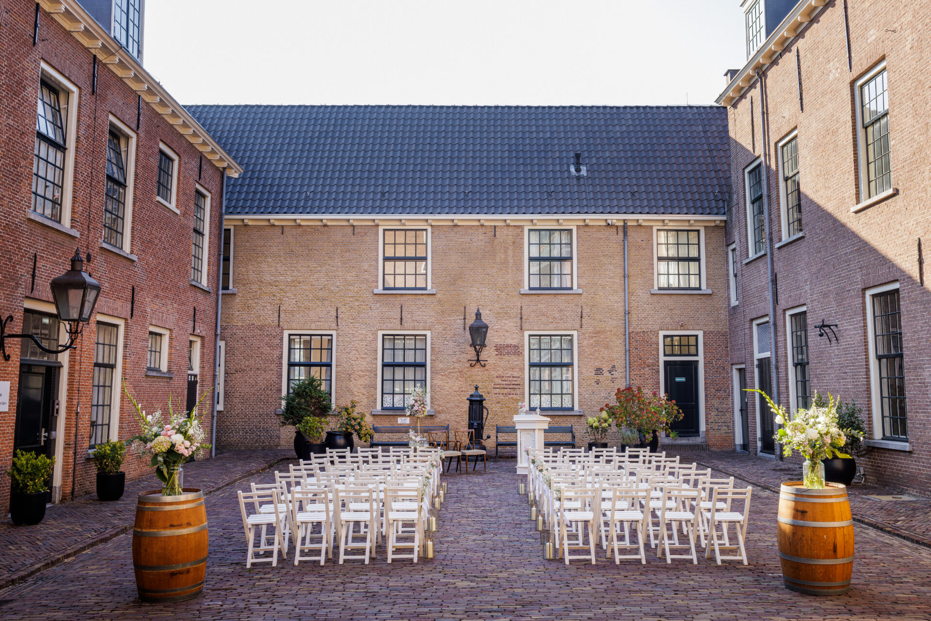 Via de houten brug van Kasteel Woerden komt u op de indrukwekkende binnenplaats. De binnenplaats is voorzien van authentieke kinderkopjes. Via het glazentrappenhuis op de binnenplaats kunt u het Kasteel betreden. Ook kunt u rechtstreeks vanaf de binnenplaats de gewelven betreden.